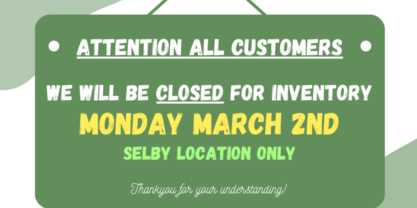 SELBY LOCATION CLOSED MONDAY MARCH 2ND