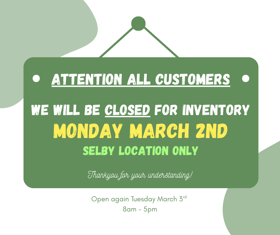 Please note: We will be CLOSED February 16th