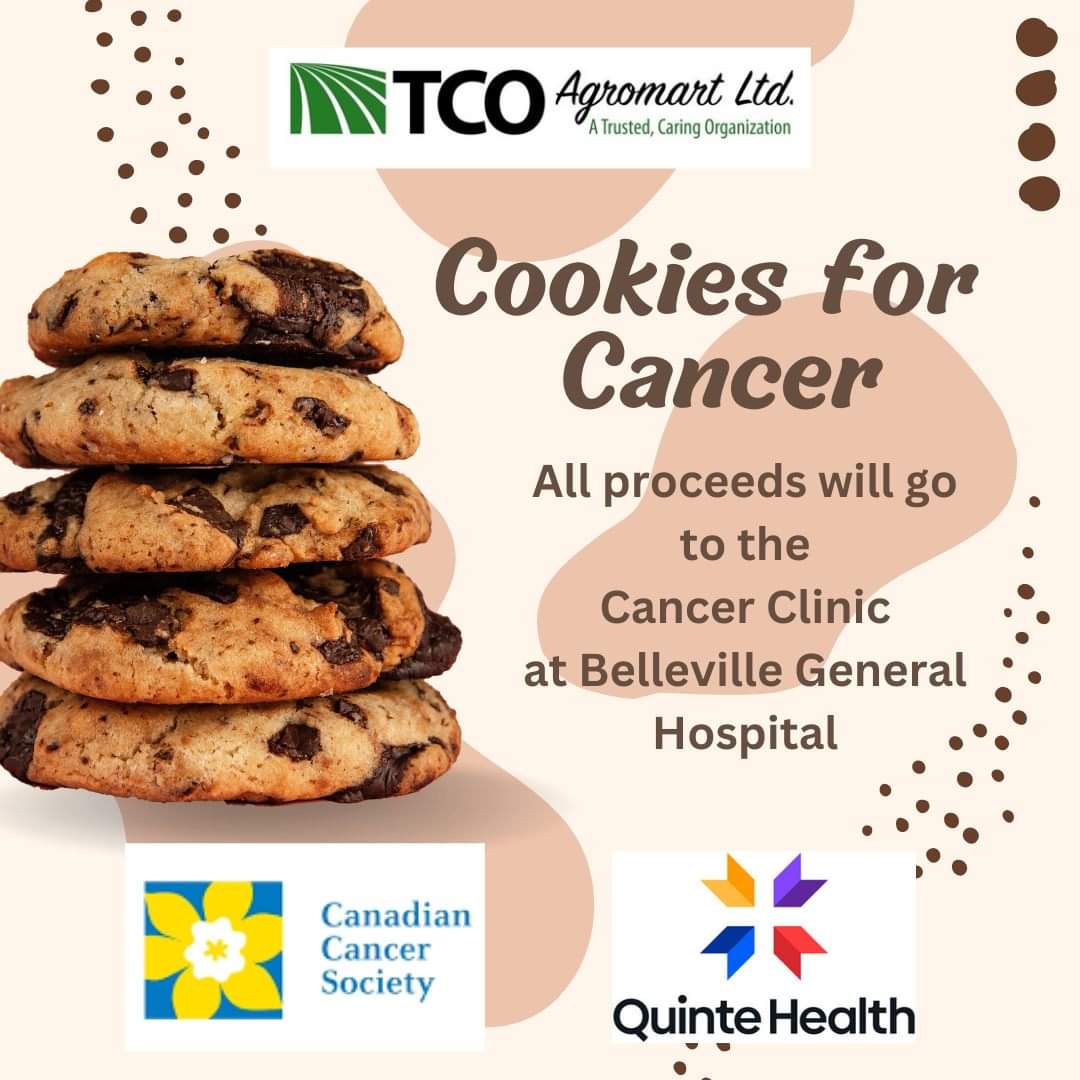 Our team at TCO Agromart is having a fundraiser selling chocolate chip cookies for cancer. Everyone has been touched by cancer in some way and currently one of our staff members, Sarah Wilson, from Brighton is undergoing treatment. We want to support Sarah and others in their fight and you can help us by ordering cookies. All money raised will go to the Cancer Clinic at Belleville General Hospital.